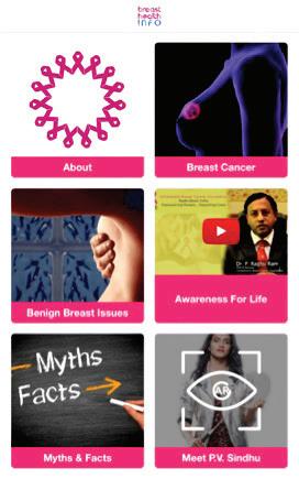 World’s first mobile app on breast health in 12 languages (English, Hindi, Telugu, Tamil, Kannada, Malayalam, Gujarati, Punjabi, Bengali, Marathi, Oriya & Assamese).