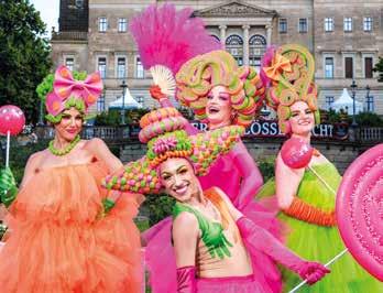Die Bühnen werden im gesamten Gelände verteilt – so kann sich jeder seine Lieblingsmusik suchen und später bei Feuerwerk und Projektion Familie und Freunde wiedertreffen. Damit wird die Schlössernacht noch mehr zu einem Event für Jung und Alt. Romantisch illuminierte Flanierwege führen von Bühne zu Bühne, begleitet von Walking-Acts und vielen kulinarischen Ständen, die auch vegane und vegetarische Gerichte anbieten.