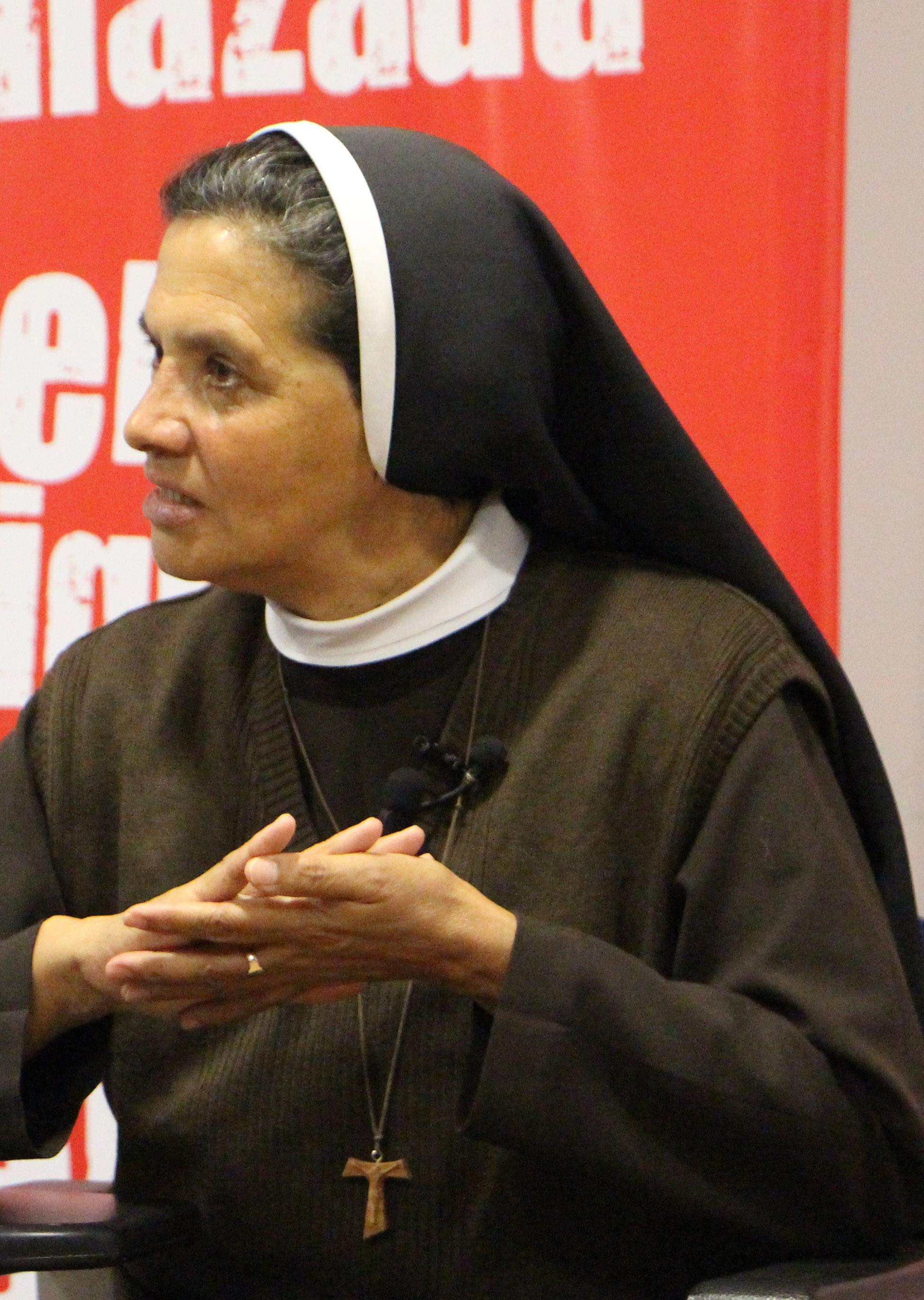 Sr Gloria Cecilia Narvaez at the celebration of the Red Week evidencing the Religious Persecution in the world in Colombia, November 2022