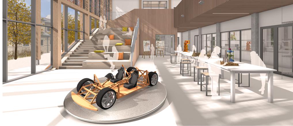 Our curriculum supports pupils to become broad creative thinkers and problemsolvers who can make a difference today and in the world of the future. The proposed Innovation and Design Centre (IDC) will provide a modern, state-of-theart facility which will encourage an integrated approach to teaching and learning. The Art and Design and Technology departments will be housed within the new facility which, along with the existing Performing Arts Centre, will create an ‘Arts Quarter’ on the lake.