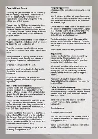 This competition will reward two essays written by Wycombe High School students which are judged to display the best combination of: