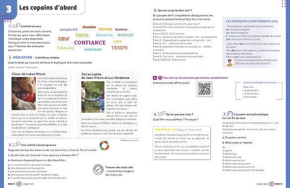 EN VRAI met l’accent sur la communication et notamment sur l’interaction orale, en tant qu’activité langagière au même titre que la production, la réception et la médiation. De nombreuses interactions, y compris des jeux et des activités ludiques, favorisent les échanges en binôme ou en groupe et rendent la méthode d’autant plus dynamique.