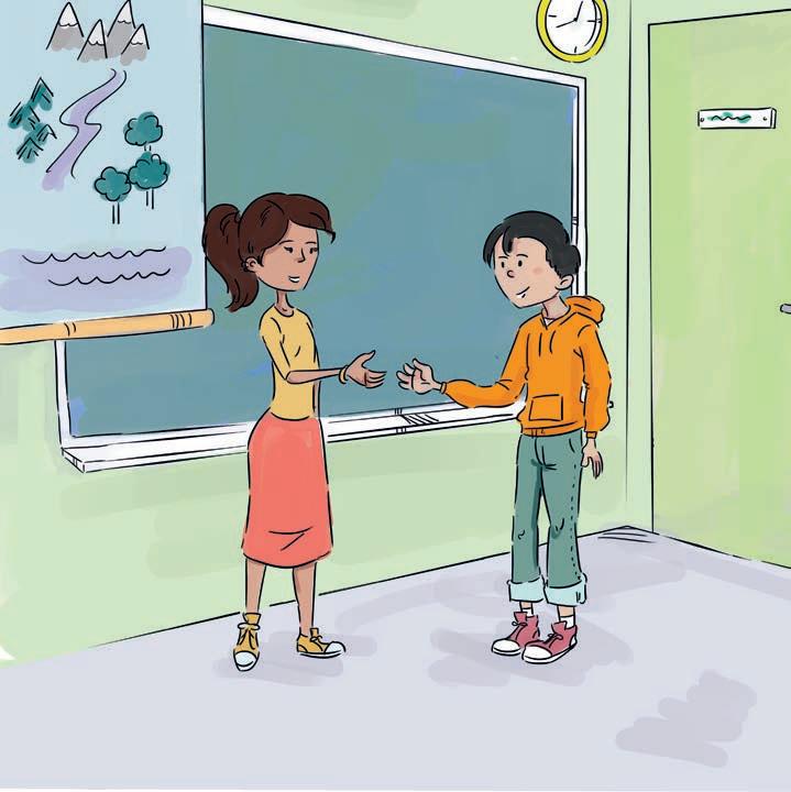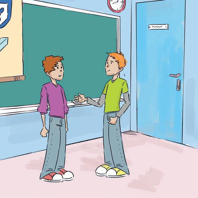 Hoy es el primer día de clase. Escucha y lee los diálogos.