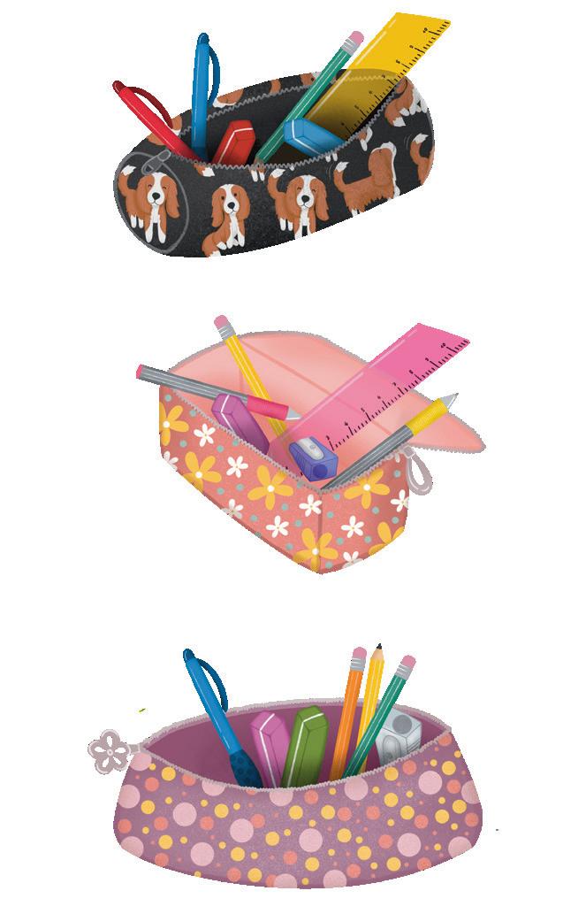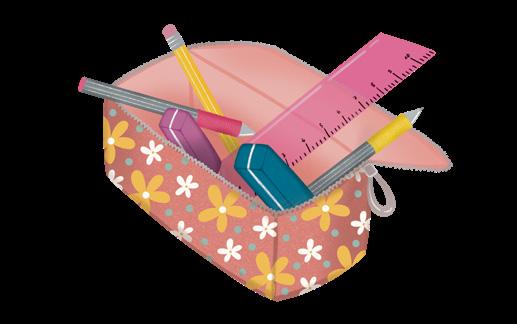 In meinem Mäppchen sind zwei Kulis, ein Bleistift, ein Spitzer, ein Radiergummi und ein Lineal.
