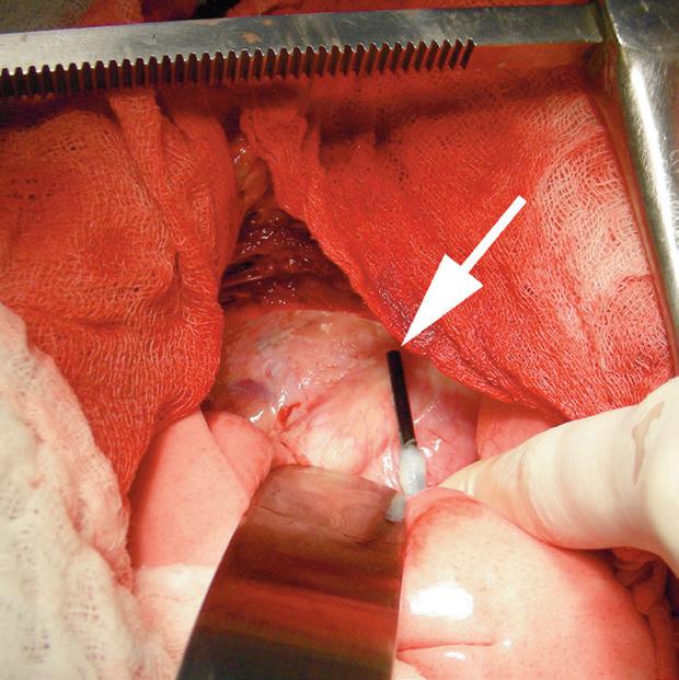 Rycina 4.1.3. Ciało obce penetrujące ścianę klatki piersiowej (pies) TK