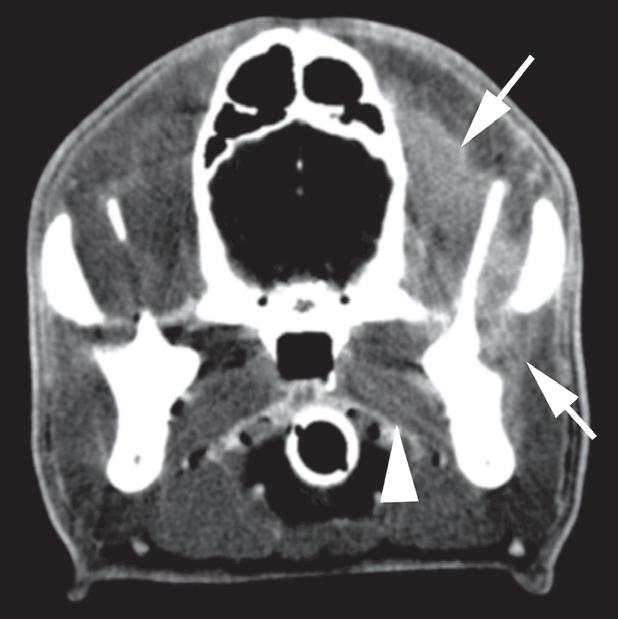 Rycina 1.4.5. Zapalenie mięśni żwaczy (pies) TK