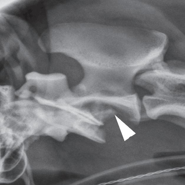 Rycina 3.2.7. Złamanie trzonu kręgu C2 (pies)