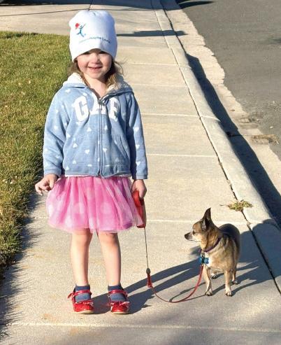 Lacey, the chihuahua, taking Public Affairs Specialist Mark Horan’s daughter, Parker, on a walk.