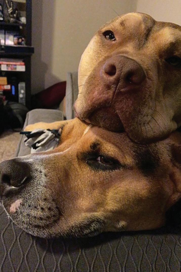 These two pitbull buddies, Bruno and Bruce, lounge about at the home of Public Affairs Videographer, Megan Arias.
