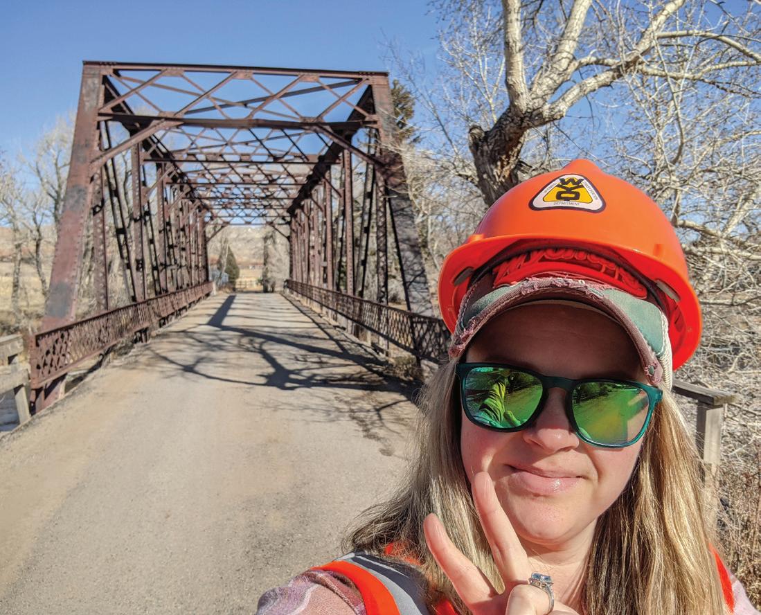 Stephanie Lowe, a cultural resource specialist with Environmental Services, stands in front of a historic bridge in Fremont County.
