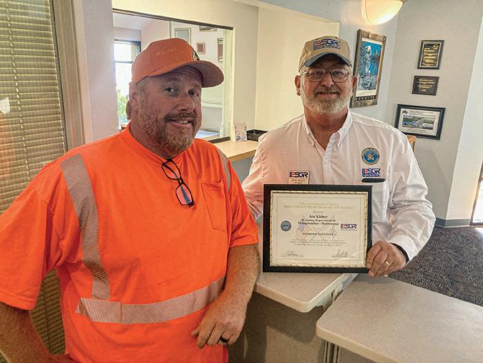Asa Kidney, left, receives special recognition from Dean Welch with Wyoming Employer Support of the Guard and Reserve (ESGR) for being a “Patriotic Employer” making sure one of the employees he supervises has the appropriate time off when called to duty. n