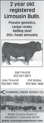 15Wyoming Livestock Roundup • Volume 34 No. 22 • September 24, 2022 O X B OW R ANCH WOLF CREEK, MT OxBowRanchAngus .com MONDAY OCTOBER 10, 2022 Female Sale Select group of higher producing females 50 bred cows, all ratioing over 100 on production 15 bred heifers, picked from top 10% of last year's calf crop 25 heifer calves off the 50 bred females selling 200+ head commercial heifers from our customers 100 head slick • 100 head one brand AIed to Ox Bow Vindicator 0017, covered with Ox Bow hfr bulls WEDNESDAY MARCH 1, 2023 Spring Bull Sale 100 Head of Yearling and Two Year Old Bulls The information contained herein is not an offer to sell insurance. No binder, insurance policy, change, addition, and/or deletion to insurance coverage will be effective unless and until confirmed directly with a licensed agent. Please note any proposal of insurance we may present to you will be based upon the values developed and exposures to loss disclosed to us by you. All coverages are subject to the terms, conditions and exclusions of the actual policy issued. Not all policies or coverages may be available in every state.All insurance products are offered through Silveus Insurance Group, Inc. (307) 285-9898 | (303) 539-9300 WWW. PRF A DVISORS. COM RISK MANAGEMENT SOLUTIONS Tait Berlier Tait.Berlier@cropins.net The PRF Deadline is December 1st!
