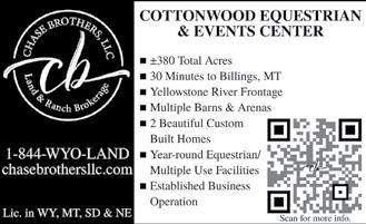 TER: Alpine setting. Beautiful views. Located in the Dillon, MT area. $1,700,000. Call Sidwell Land & Cattle Co., Richard Sidwell, 406-861-4426, 406322-4425 or e-mail sidwell@ sidwell-land.com 10/8