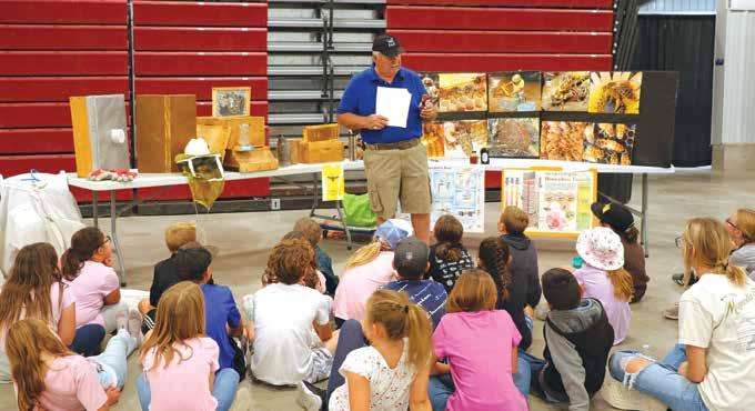 Ag day – Jim Jordan of A Bee Friendly Company presented during the Laramie County Cowbelles Ag Expo on Sept. 20-21 at the Event Center at Archer in Cheyenne. Nearly 500 to 600 Laramie County School District fourth graders attended the event to learn about livestock and agriculture production, animal health and wildlife ecosystems. WYLR photo