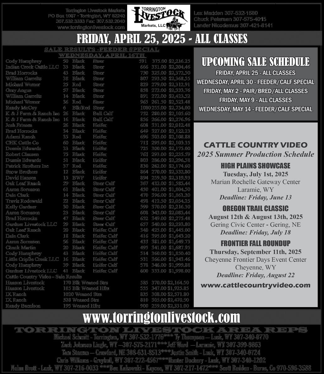Market steady, great turnout for the Bulls of the Bighorns Sale. Thank you and we appreciate your business! Thank you and we appreciate your business!