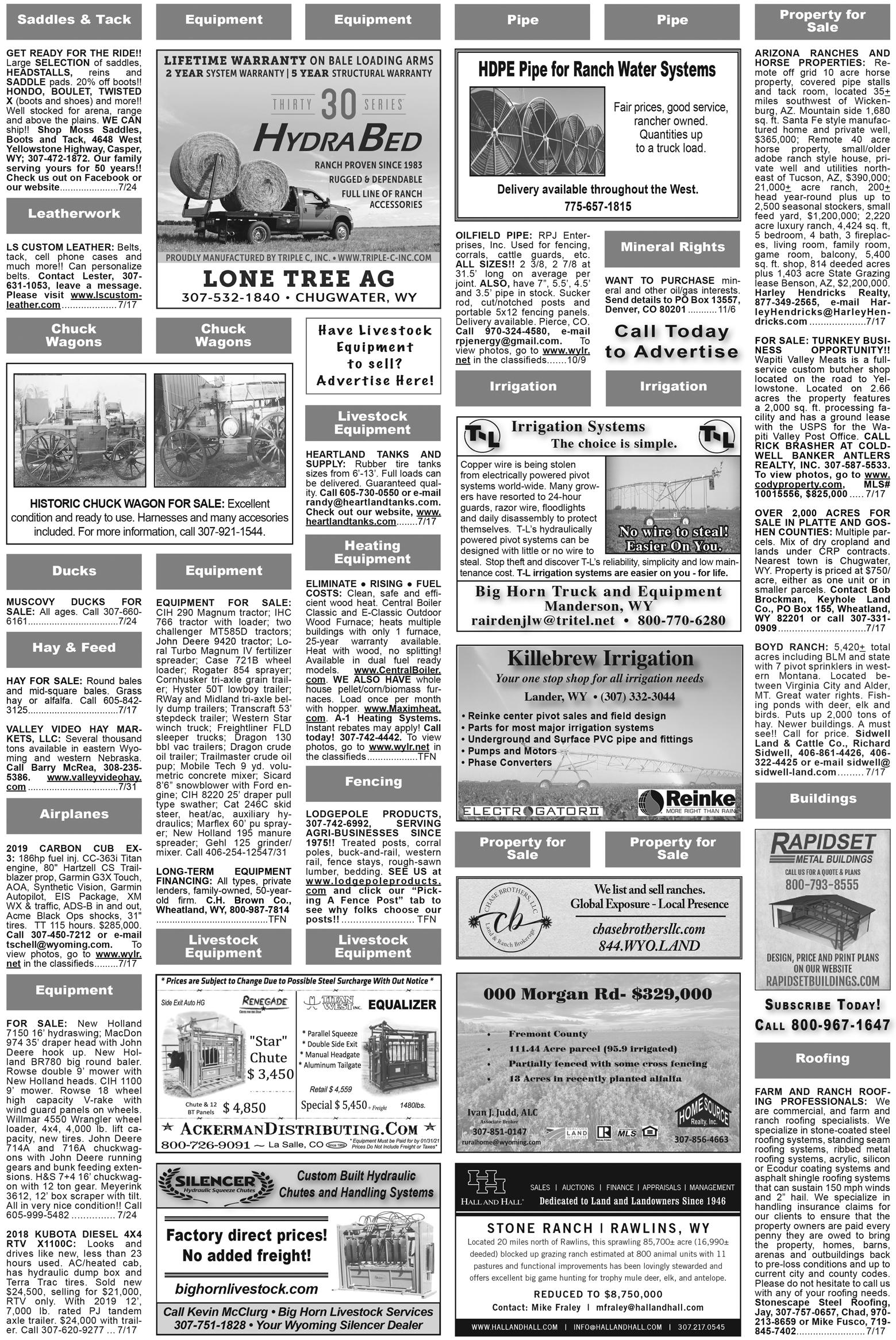 Sale, Futurity & Versatility Ranch Horse Show, Broadus, Mont., 406427-5420, prqhba.com Sept. 4 Proffit Ranch 20th Annual Labor Day Horse Sale, Diamond X Ranch, Evanston, 307-723-5857, proffitranch.com Sept. 11 Open Box Rafter Ranch 28th Annual Horse Sale, Rapid City, S.D., 605538-4450, rafterranch.com Sept. 13 Wyoming Wool Growers Association Premier Ewe Sale, Douglas, 307-265-5250, wyowool.com Sept. 14 93rd Annual Wyoming State Ram Sale, Wyoming State Fairgrounds, Douglas, 307-265-5250, 307-351-1422, wyowool.com Sept. 14 Western Video Market, Haythorn Ranch, Ogallala, Neb., 530-347-3793, wvmcattle.com Sept. 15 8th Annual Montana Ewe Sale, Eastern Montana Fairgrounds, Miles City, Mont., 406-945-0404, mtsheep.org Sept. 16 96th Annual Montana Ram Sale, Eastern Montana Fairgrounds, Miles City, Mont., 406-210-2852, mtsheep.org Sept. 16 Cattle Country Video Sandhills Roundup Sale, Cheyenne Frontier Days Event Center, Cheyenne, 888-322-8853, cattlecountryvideo.com Sept. 17 Northern Livestock Video Auction Fall Premier, 866-616-5035, northernlivestockvideo.com Sept. 17-18 25th Anniversary Van Norman and Friends Production Sale, Elko County Fairgrounds, Elko, Nev., 775-756-6508, 775-934-7404, vannormansale.com Sept 19 19th Annual Sugar Bars Legacy Sale, Sheridan County Fairgrounds, Sheridan, 605-347-8120, sugarbarslegacy.com