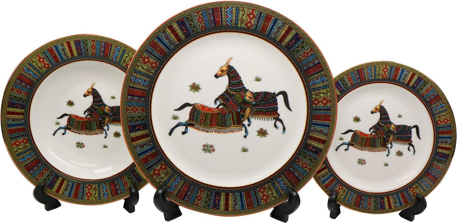 This dishwasher-safe premium bone china set includes: 6 cups and 6 saucers, 6 dinner plates, 6 soup plates, 6 dessert plates, 6 salad plates, 6 small serving spoons, 6 small bowls, 1 teapot with cover 1 sugar pot with cover, 1 creamer, 1 salt & pepper, 1 ashtray, 1 large serving bowl, 1 soup tureen with lid, 1 oval serving plate, and 1 large serving spoon. $999.*