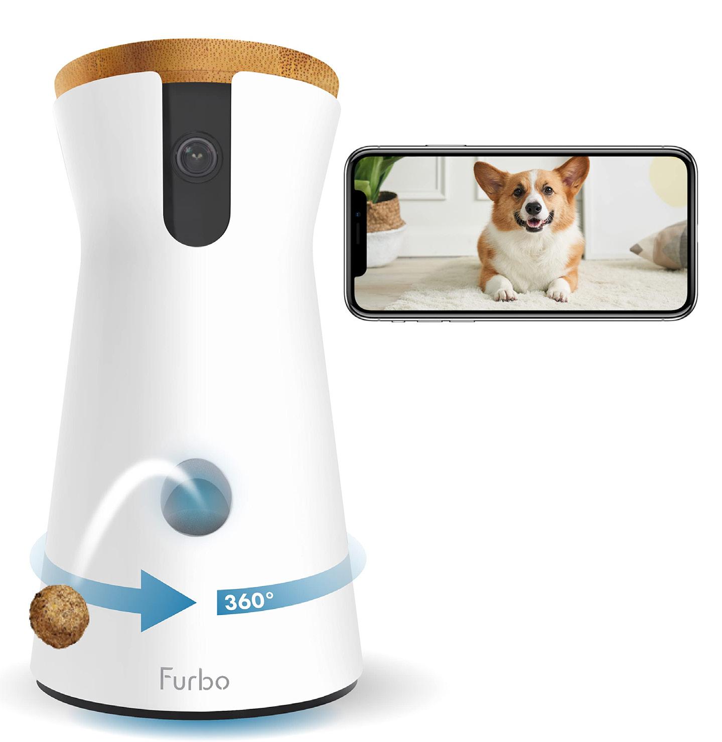 See more than ever before with the allnew rotating Furbo 360° Dog Camera. Hear and speak to your dog, and toss it treats from anywhere you are. Know what’s happening with real-time Barking Alerts. Full HD video with color night vision. $108.*