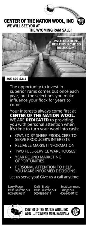 We are excited to show you some of the best white and black bucks in the country that are sure to add pounds and profit to your bottom line! Be sure to check out the New Consignors list on page 45 for more information. We hope you all will join us for the festivities surrounding the 2025 WY State Ram Sale which you will find more details on throughout the catalog. We welcome you to take part in these wonderful programs!