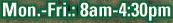 through Wednesday 8:00 a.m.-4:00 p.m.
