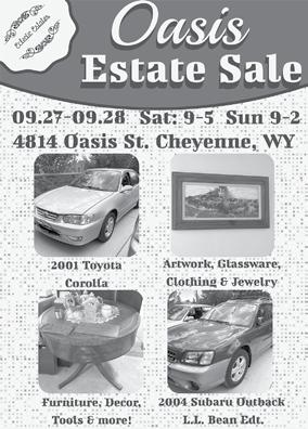 Fri- Sat 9am-5pm usataxwyo com 307-5145888 HIGH SPIRIT HOLISTIC SHOW, SEPT 27, 10am5pm, Sept 28, 10am-4pm, Red Lion Hotel, Shoshone and Laramie Rooms, 204 W Fox Farm Rd Holistic living readers and visionaries, relaxation, metaphysical shopping $5 per adult or 5 non-perishable food products or personal hygiene items, 12 and under free with adult For more info, please email Angie at angiefarnum@yahoo com Food donations benefit Salvation Army HOME BREAK-INS TAKE