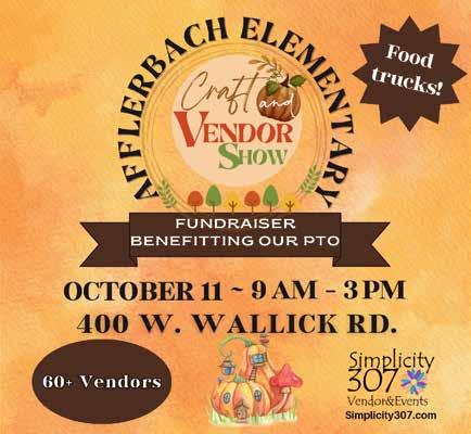 AFFLERBACH ELEMENTARY CRAFT AND Vendor Show, benefitting our PTO, Oct 11, 9am3pm, 400 W Wallick Rd, 60 plus vendors, food trucks For more info: Simplicity307 com Simplicity 307 Vendor and Events