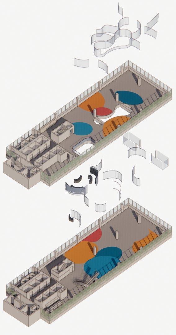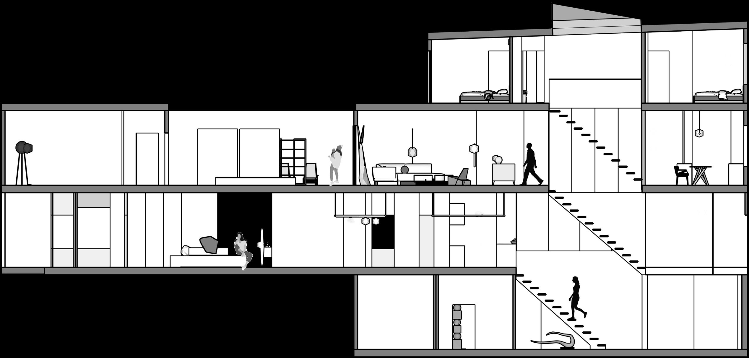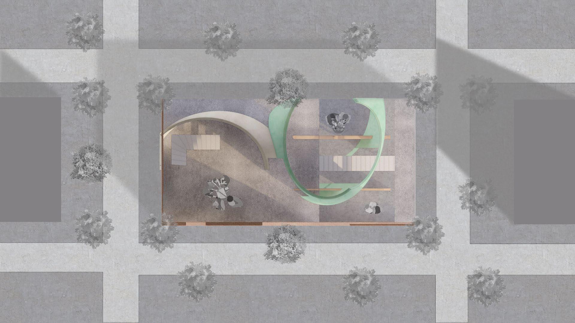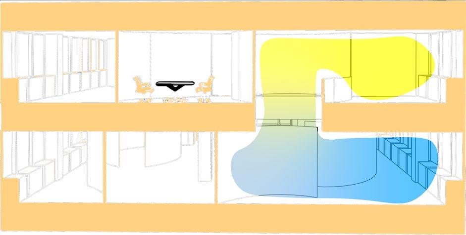 The Horizontal space is used as the original area of each floor, and the Oblique space is used as a cut to separate the same plane, so that the overall space has a vertical connection, and the Vertical separation is used to connect and divide different spaces.