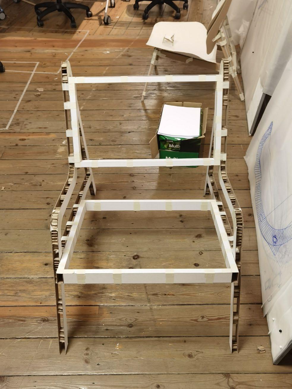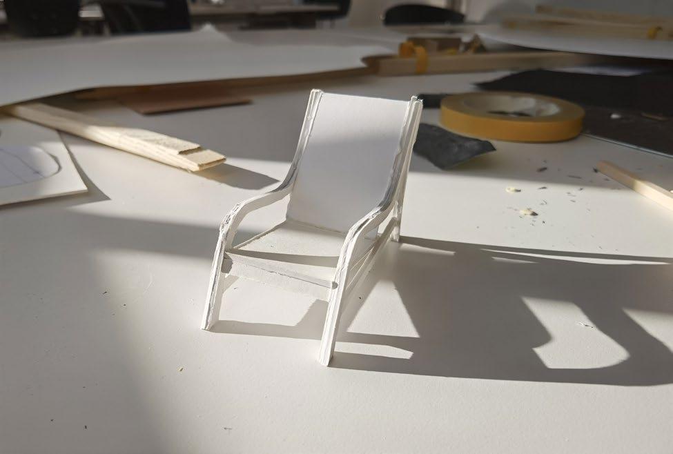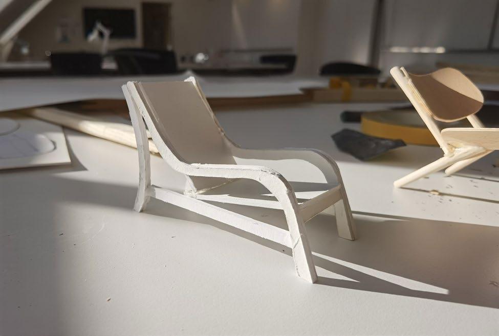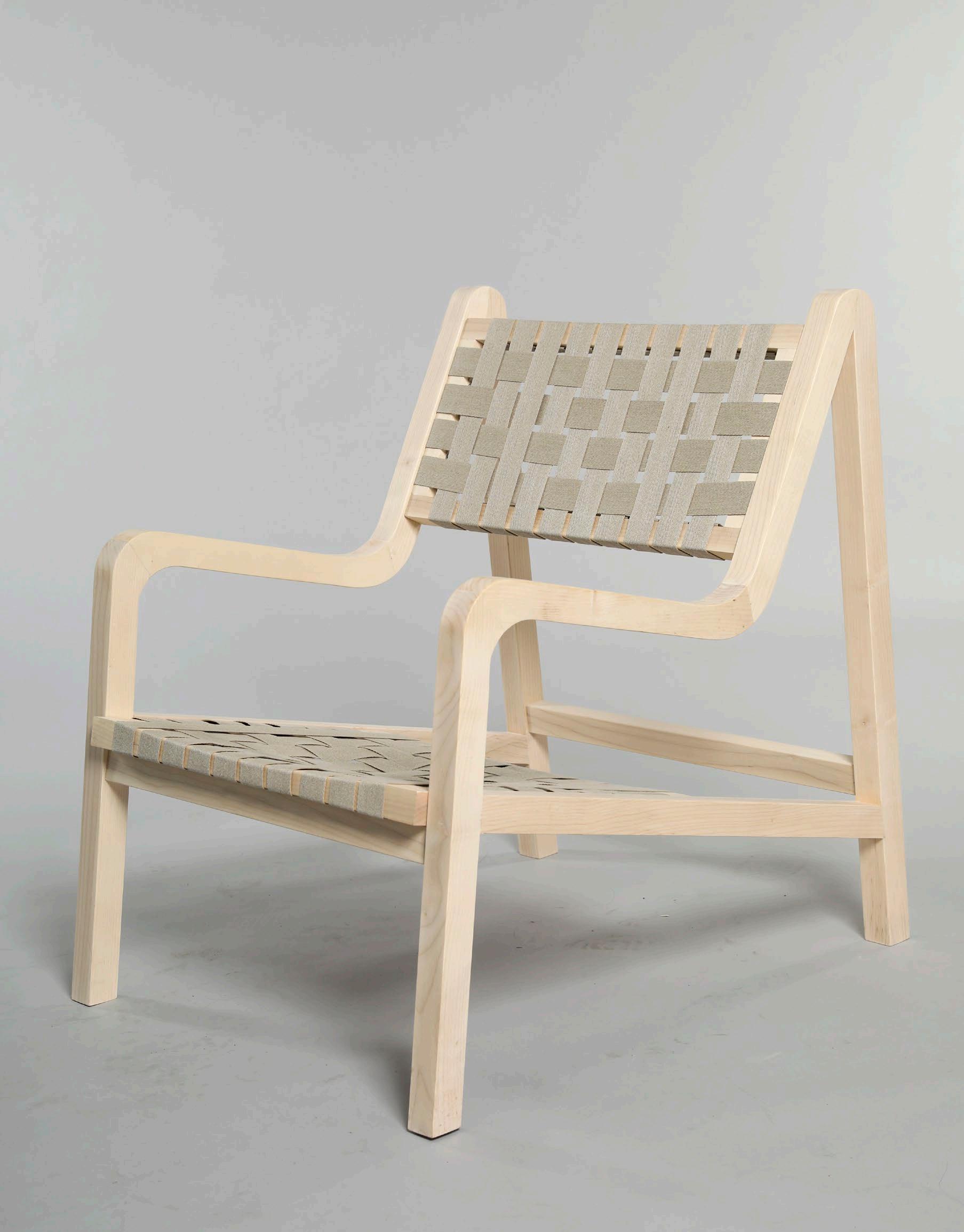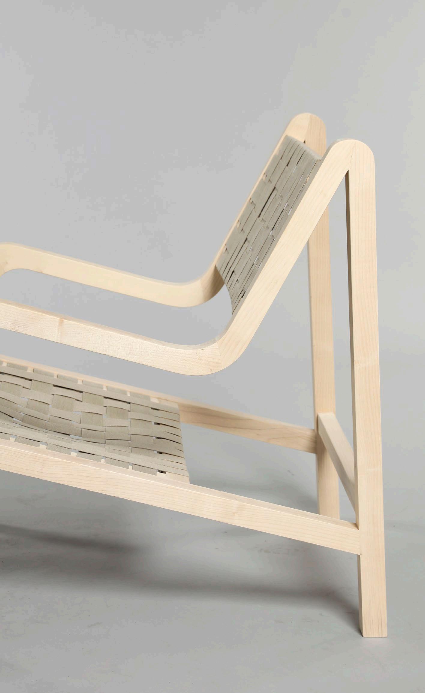 The goal of the project is make a lounge chair,through the study of diverse of lounge chair, it was decided to separate the seat surface and backrest and canvas strips as the main material. Front leg, armrests and rear legs are connected by a curve, which will be a whole continuous curve from the side.