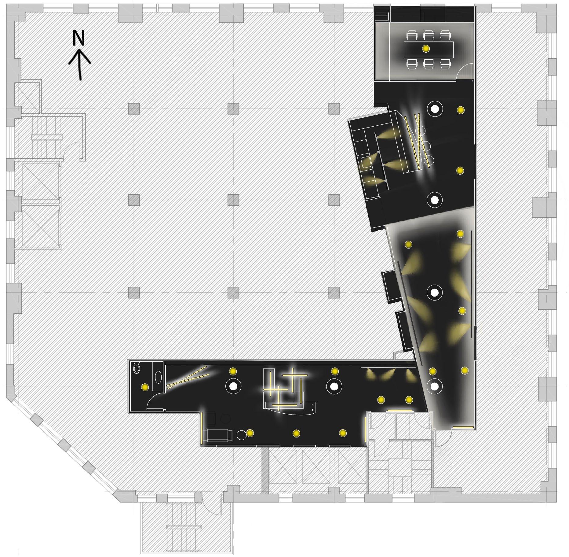 UP 向上 DN UP 向下 NIC Restroom Room Legend Bar Restroom restroom Sitting area Sitting area 5 Bar 11 1/32" 11' 9"NIC Room Legend Office Sitting area Sitting area Office 10 11 1/2" 1/2" 0" 15' 1/2" 11 1/32" 5' 17/32" PRATT INSTITUTE INT724 CLIENT: A-100 Foumula Cafe 525 Atlantice Ave Brooklyn NY Construction Plan Foumula Cafe 525 Atlantice Ave Brooklyn NY 123-322-5456 CONSULTANT: SCHEMATIC DESIGN INTERIOR DESIGNER: Wenqi Yu Chestertown 484-379-2694 CONSULTANT: CONSULTANT: A-500 0" 1/2" 1/4" 0" 9" 2' 4" PRATT INSTITUTE INT724 CLIENT: A-400 Foumula Cafe 525 Atlantice Ave Brooklyn NY RCP 525 Atlantice Ave Brooklyn NY SCHEMATIC DESIGN INTERIOR DESIGNER: Wenqi Yu 101 oak leave Dr Chestertown 484-379-2694 CONSULTANT: CONSULTANT: 1/4" 1'-0" Level 1(1) 1/4" = 1'-0" Level 2(1) LIGHTING FIXTURE SCHEDULE TypeQuantity Manufactur NodelWattageIllumination Lamp Wattage 1200mm7 40 W108 lx 2400mm7 64 W206 lx CMSD8-20 X3-30KS-4 0-S-SC-SM USAI Lighting BevelED Mini® Cylinder Square Downlight W8 lx20 VA CMSW8-09 X3-30KS-W 2-D1-S-SCPD1 USAI Lighting BevelED Mini® Cylinder Square Wall Wash W6 lx9 VA CMSW8-09 X3-30KS-W 2-D1-S-SCPJ1 USAI Lighting BevelED Mini® Cylinder Square Wall Wash W6 lx9 VA CMSW10-0 9X3-30KSW2-D1-S-S C-PR1 USAI Lighting BevelED Mini® Cylinder Square Wall Wash W6 lx9 VA Pendent Light 75 W31 lx