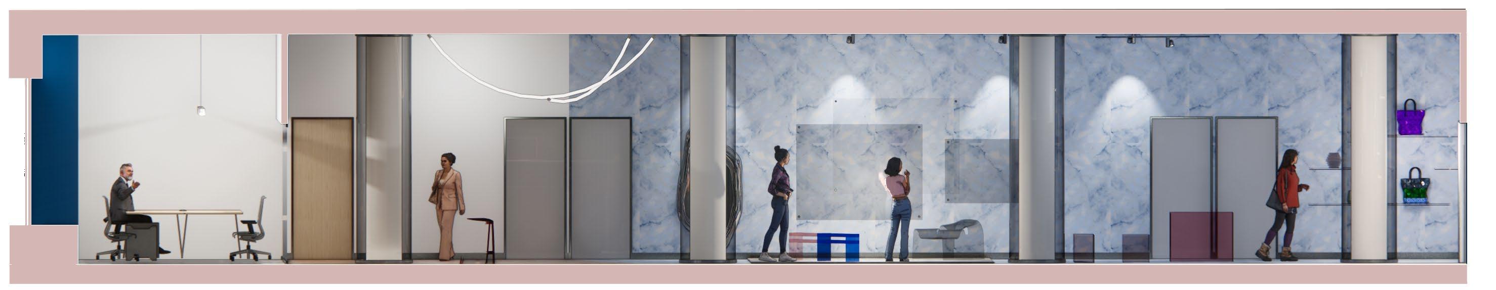 Drawing on the weakened sense of boundary between the building's original open lobby and the Lever House. It is brought into this project by subtracting the floor slab in the central area to increase the interaction between the upper and lower levels. The plan layout uses glass as the main partiton to further reduce the space barrier.