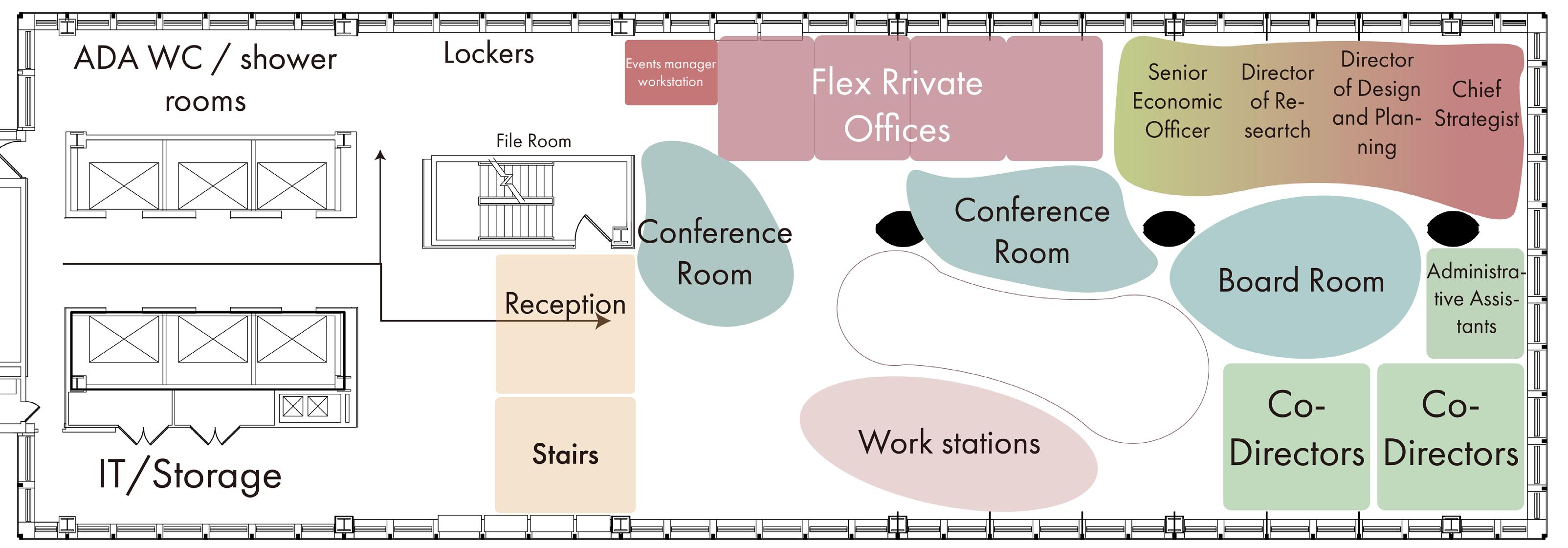 All of the furniture in the space will be using Steelcase, and since RETI will be at this location for two years, the ability to quickly install and disassemble furniture will allow for faster office occupancy and create the potential for a flexible office enviroment.