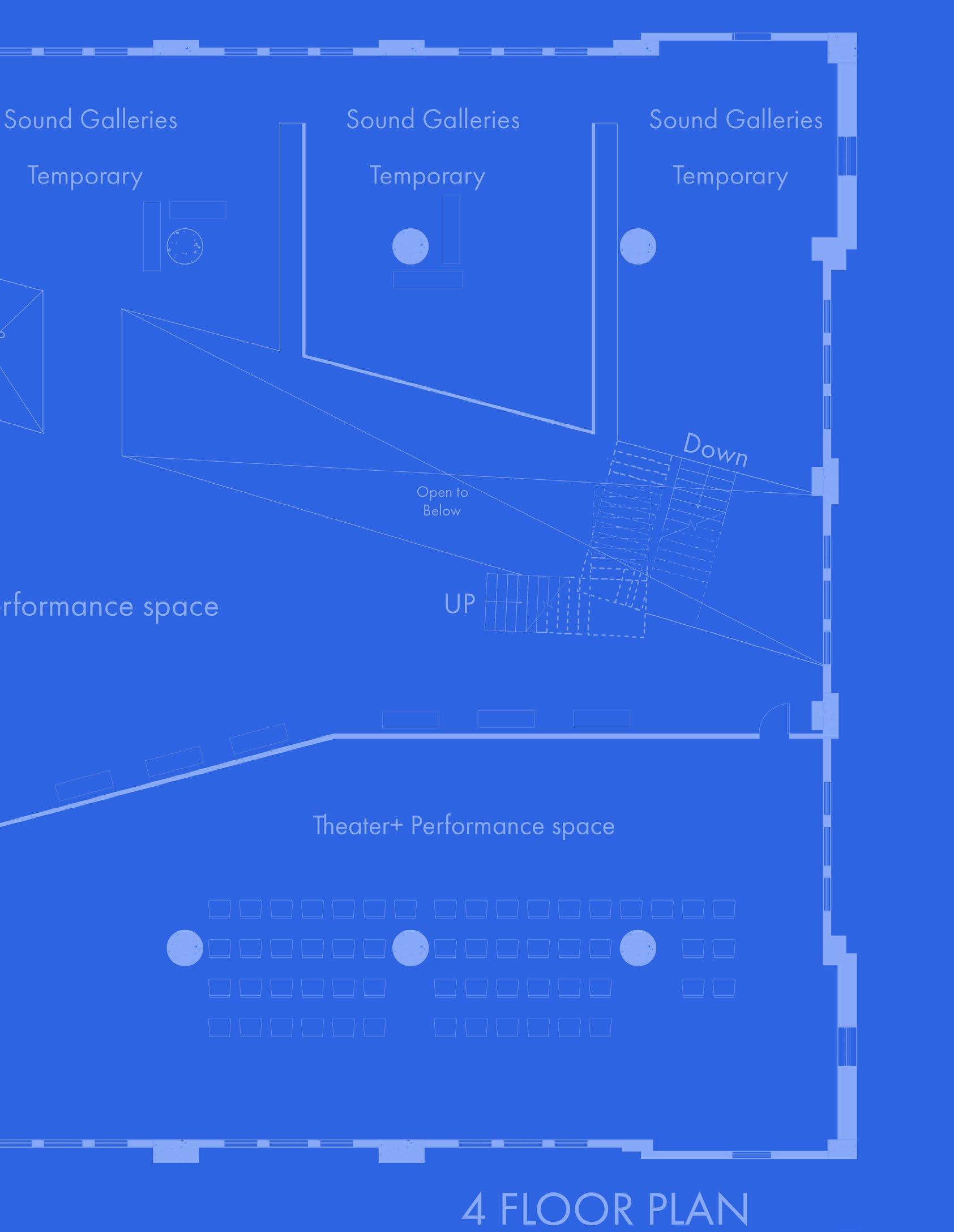 Sound Gallery: -Permanent -Flexible -Restroom -Artists Studio -Permanent sound gallery -Lecture Hall -Sound Gallery Permanent