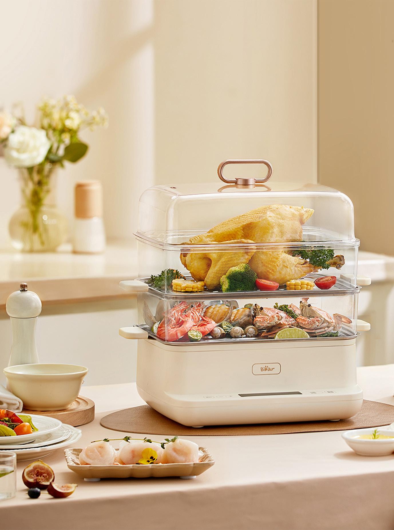 Dung tích: Khay nước 1,3L + Nồi hấp 12L