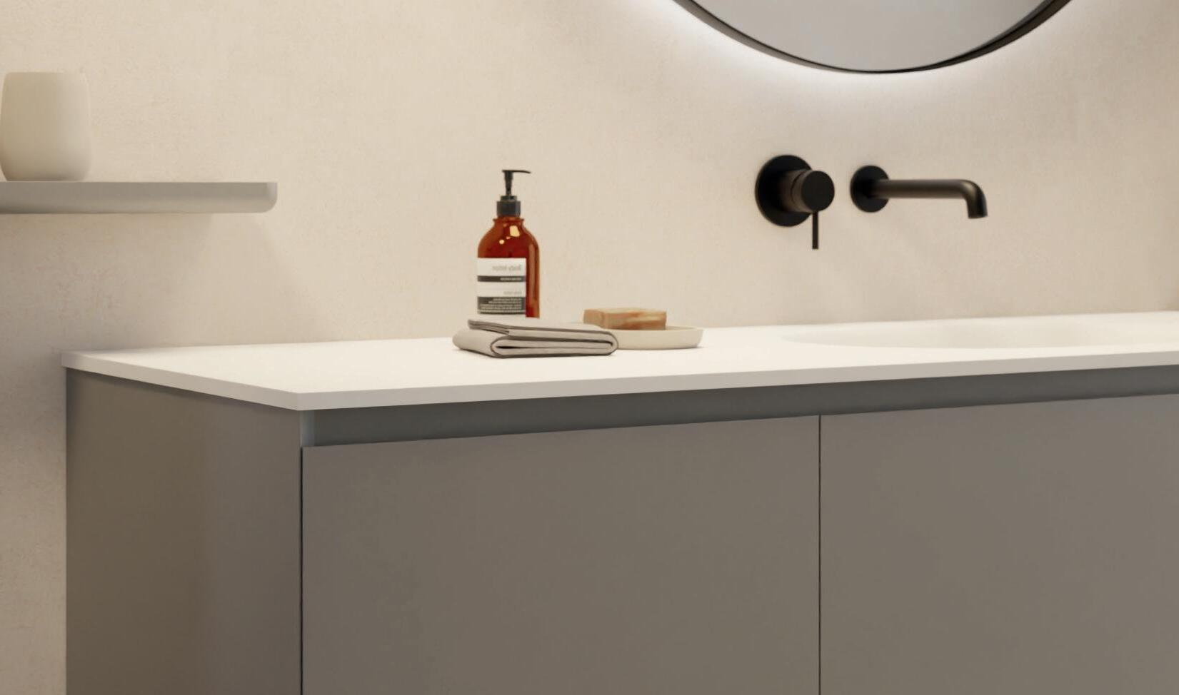 Wastafelblad/tablet te combineren met verschillende waskommen in natuursteen, Solid Surface of metaal