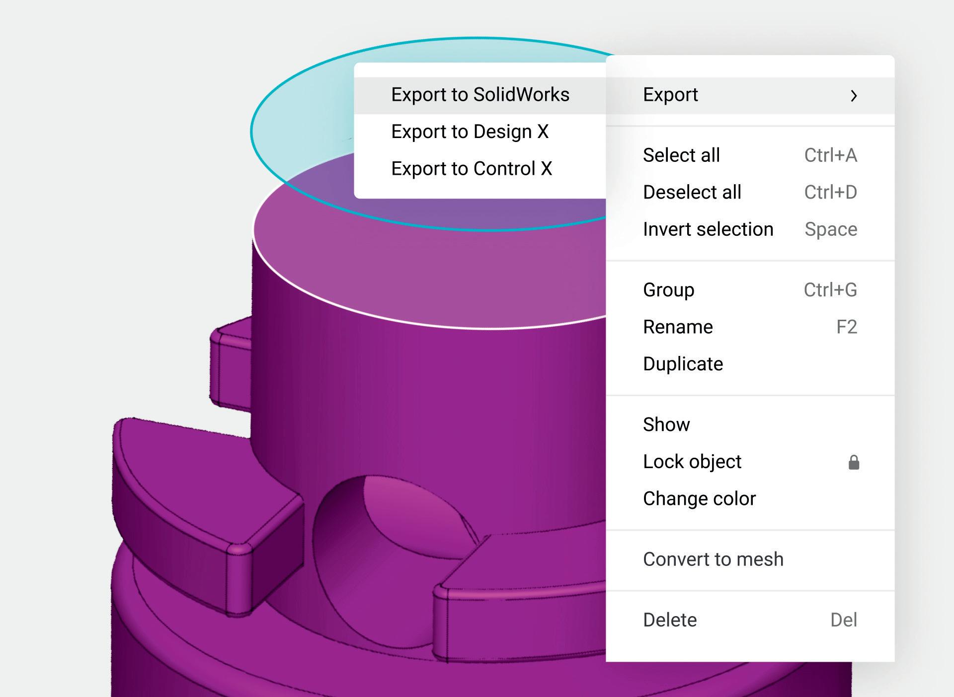 For those embedded in the Solidworks ecosystem, there is a simple process to export directly into CAD, and using cross-sections and other tricks, you can capture data from a scan to help manually translate the point data into a parametric model – but it’s a laborious manual process. There are plug-ins for Solidworks that can simplify the process further, but these come at additional expense, while AI tools are still developing.