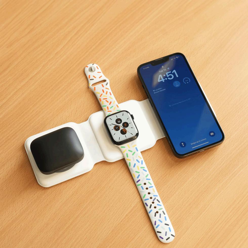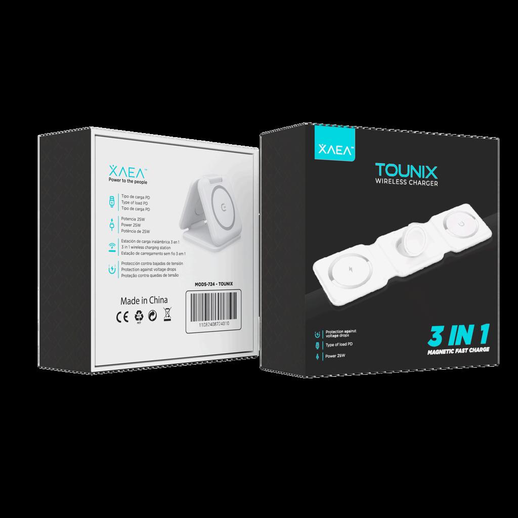 ElCargador3en1WirelessTounixeslasoluciónidealparatus clientes Conpotenciadesalidade25W,permitecargar simultáneamentevariosdispositivosdeformarápidaysegura.
