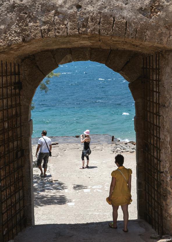 Μια πόρτα. Μεγάλη κι ορθάνοιχ τη. Αέρηδες που μπαινοβγαίνουν, της θάλασσας και κύματα του χρόνου, πνοές της ισ τορίας ασύμμετρες. Κάποτε οι ανατροπές είναι τόσες που δεν αν τέχον ται, κάποτε το απροσδόκητο γίνεται κι αναπάν τεχο. Κάσ τρο ήταν κάποτε Φρούριο πανίσχυρο Σήμερα περνοδιαβαίνουν τουρίσ τες Άλλοι με φωτογραφικές μηχανές άλλοι με κινητά σ τα χέρια Όλοι κάτι θέλουν να κρατήσουν σ τη μνήμη. το ταξίδι, την εμπειρία, την ισ τορία. Μα πιο πολύ το παράδοξο!