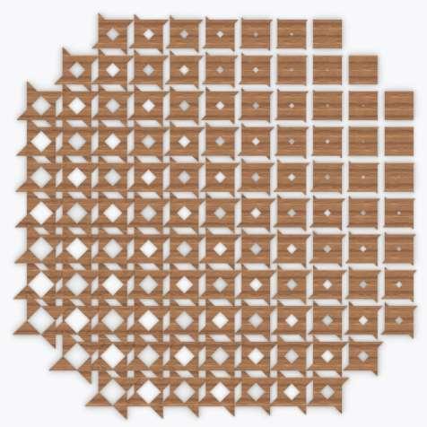 Inspiredbythenaturalgapsformedfromthebambooweavingofthecover,theparametricshadingisacomposedof numeroussquareirismechanisms.Eachsquareiriscanopenandclose.Theparametricshadingreactsaccordingtothe sundirectionandeachsquareirisopens/closesaccordingly.Thesquareirismechanismisimplementedontheatrium shelterandbuildingfacade.