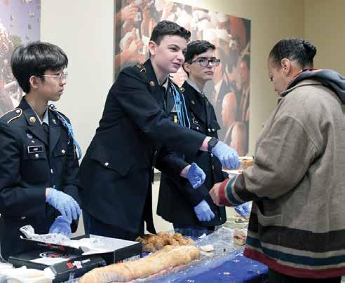 In November, the Regiment marked Veterans Day with several public events. On November 6, Colonel Thomas Pike, USA (Ret.), Xavier’s Senior Army Instructor, and Cadet Colonel Daniel Zaletofsky ’26 led the Regiment to the Margaret Cochran Corbin VA Campus on 23rd Street, where cadets provided and served food at a special luncheon for our nation’s veterans. Four days later, Xavier cadets presented the colors during a New York Rangers game at Madison Square Garden. On November 11, the entire Regiment marched in New York City’s Veterans Day parade for the first time.