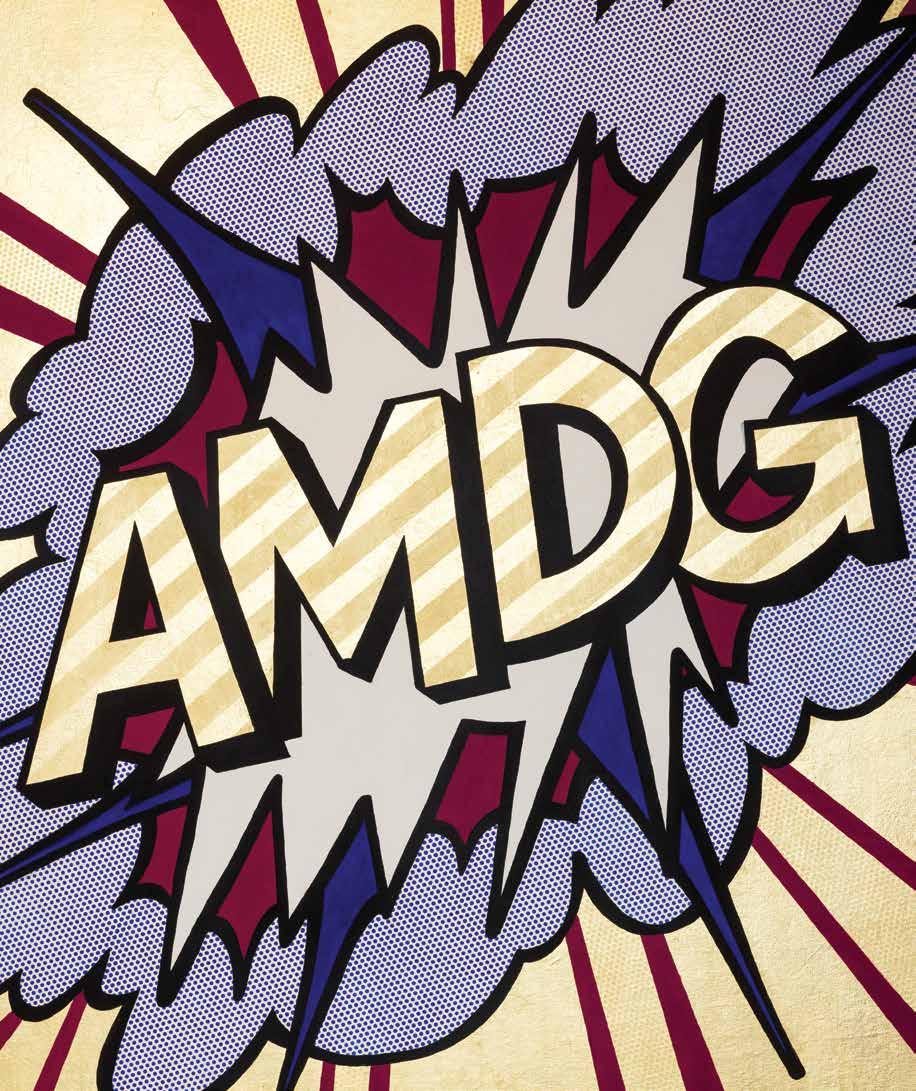 I love the Roy Lichtenstein appeal of Nick’s A.M.D.G. I love the fact that it pops. I love the fact that it’s big and bold. I hope in some small way it can inspire us to be big and bold in our work, and that our work is big and bold in giving glory to God. Our shared work at Xavier is the work of helping young men grow into their fullest and best selves, to help them make real God’s greatest desires for them.