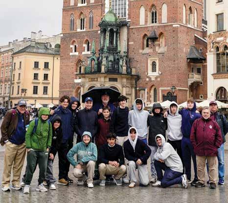 In October, 14 students traveled to Poland as part of Xavier’s Holocaust Studies Program. It was the third time Xavier students have embarked on the trip, which includes stops in Warsaw and Kraków as well as a moving visit to Auschwitz-Birkenau, the infamous concentration and extermination camp. Tom Maher ’80, who along with his wife, Nancy, funds the Holocaust Studies Program, joined students and chaperones on the trip.