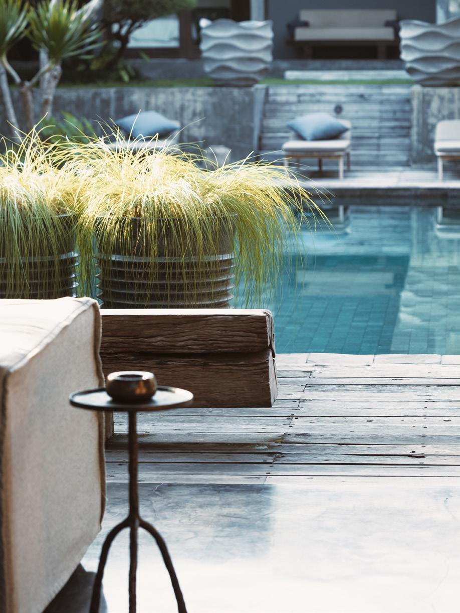 The swimming pool draws on mid-century design influences. Contemporary day beds by Kettal ‘Park Life’