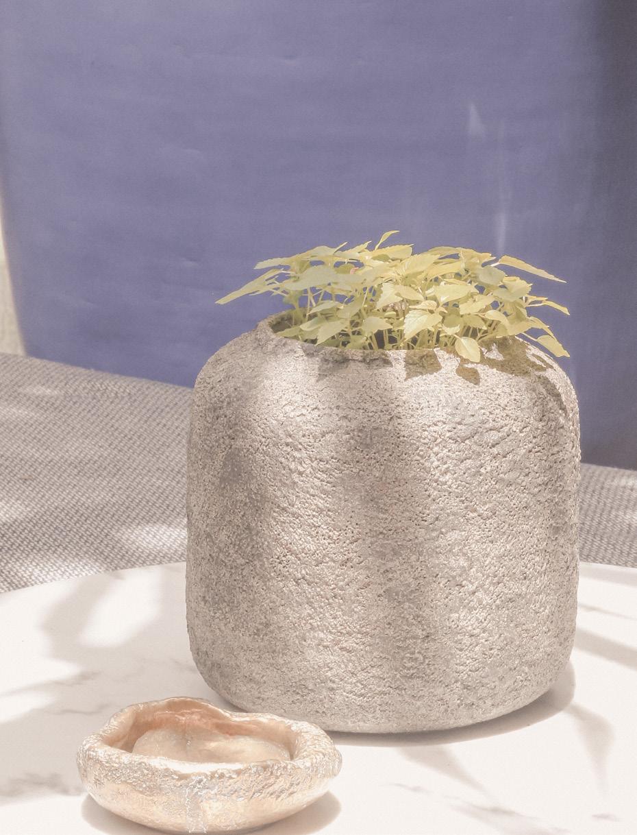 Bespoke pots in clay with old patine finishing home made. Plant combination with graphic shapes.