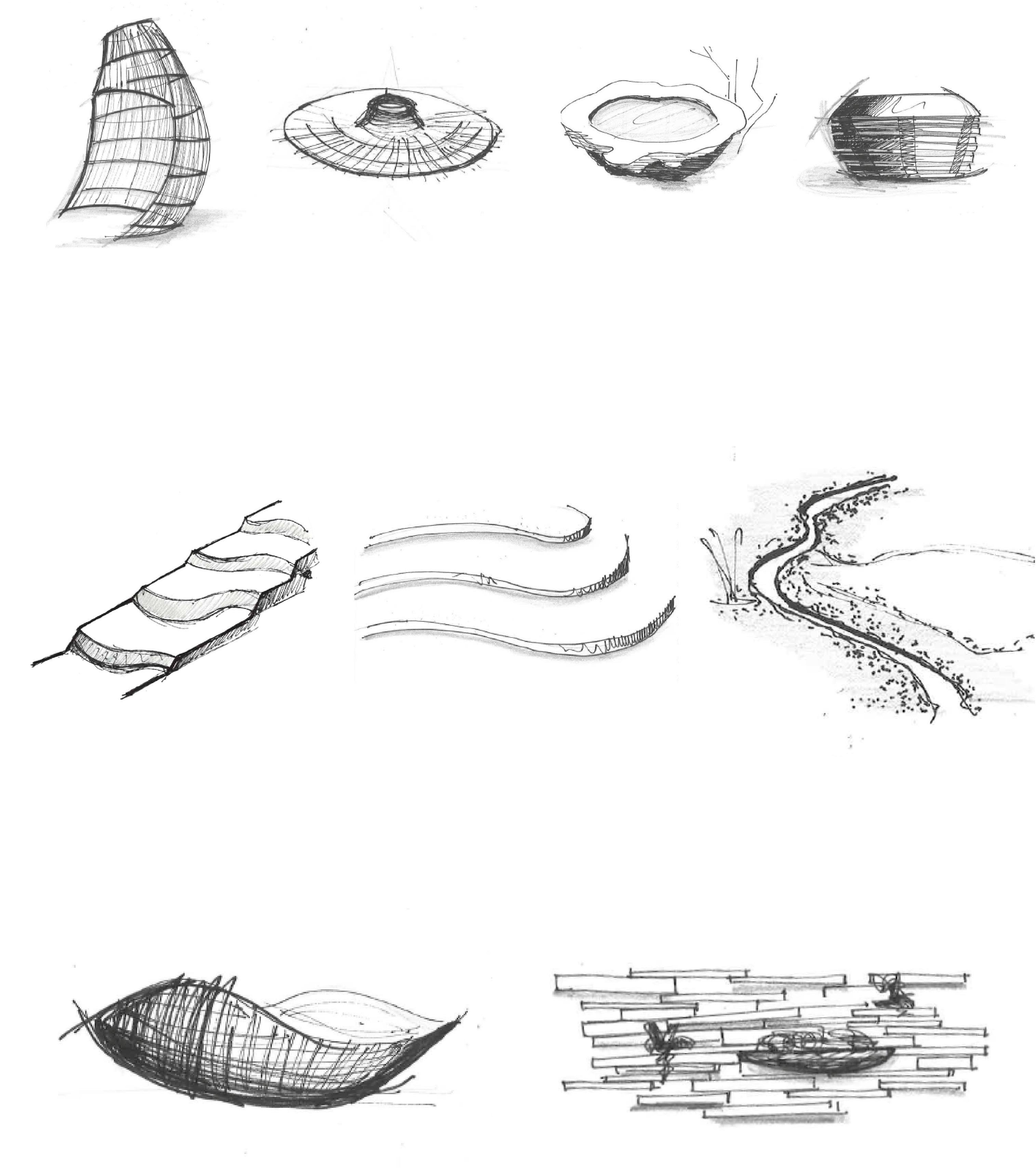 Ideas being developed : starting with simple curves inspirations towards creating art pieces and life places for the hanging garden.