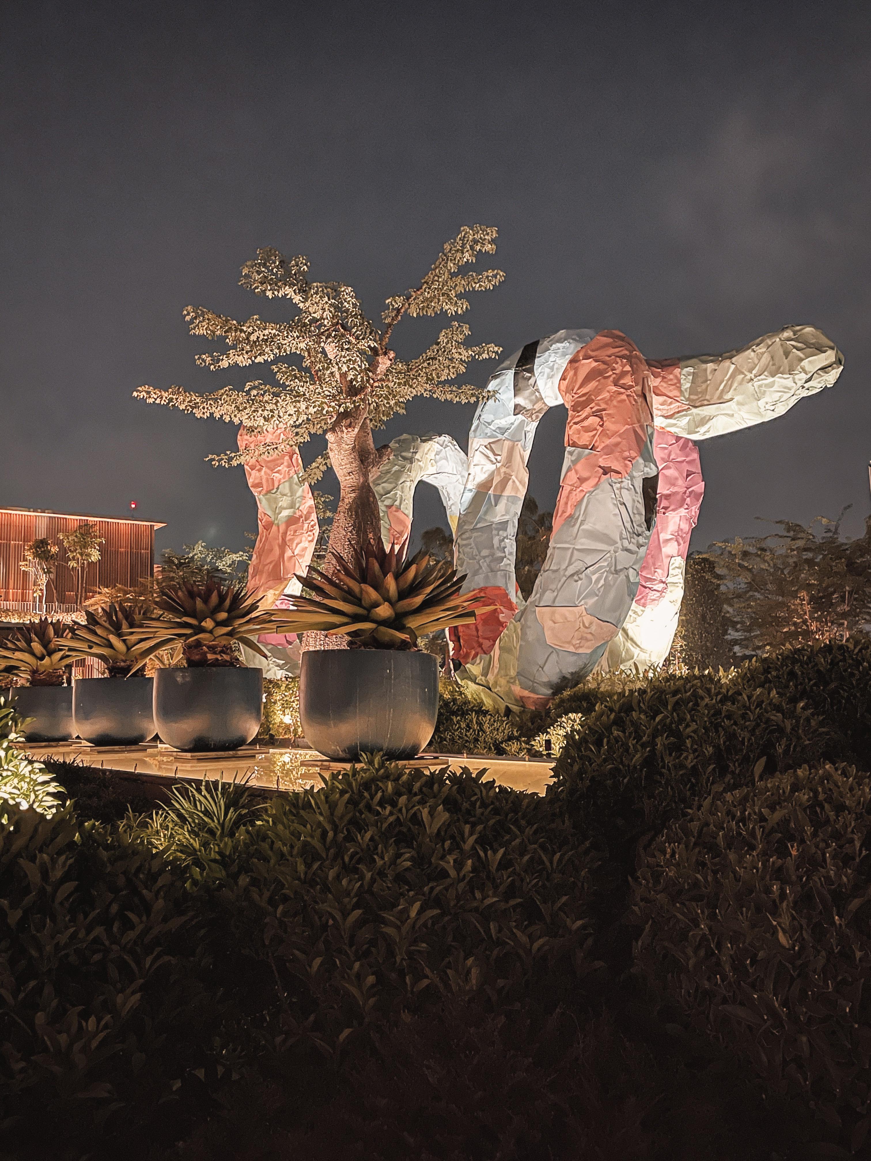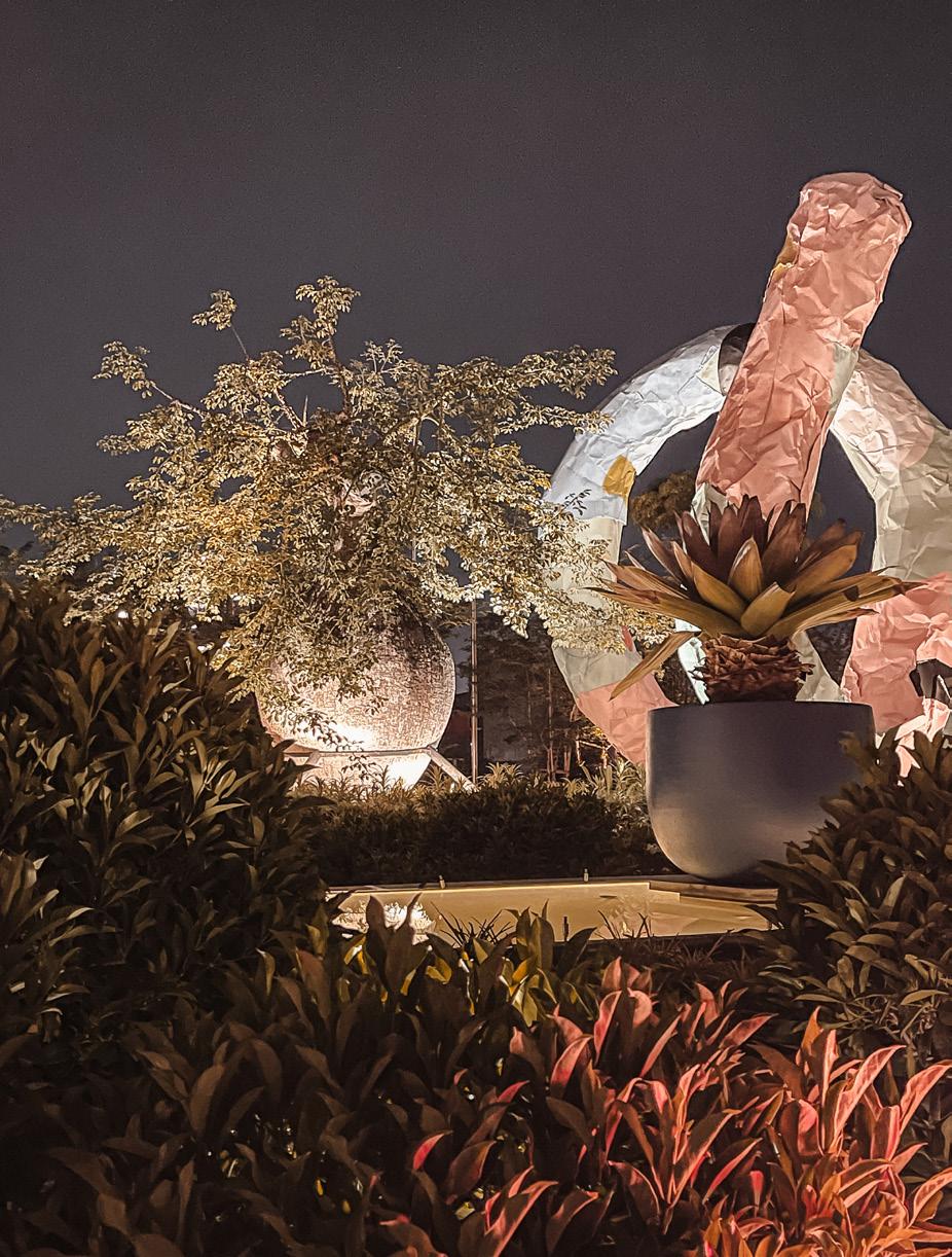 The sculptures created for this garden in Semarang Indonesia merge art, architecture, landscape, and nature. They are designed to give viewers an inimitable immersive experience. We create journeys in which every element of our sculptures – the material, the form, the colour, the philosophy, light, air etc. – interacts with the viewers and has physical as well as symbolic presence and palpable tension.