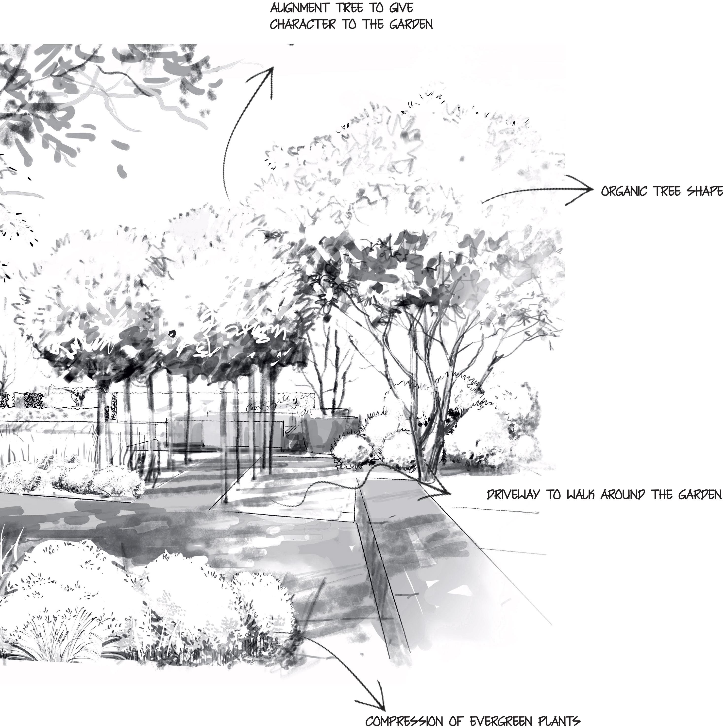 Trees, plants, flowers will be selected to form a coherent ensemble