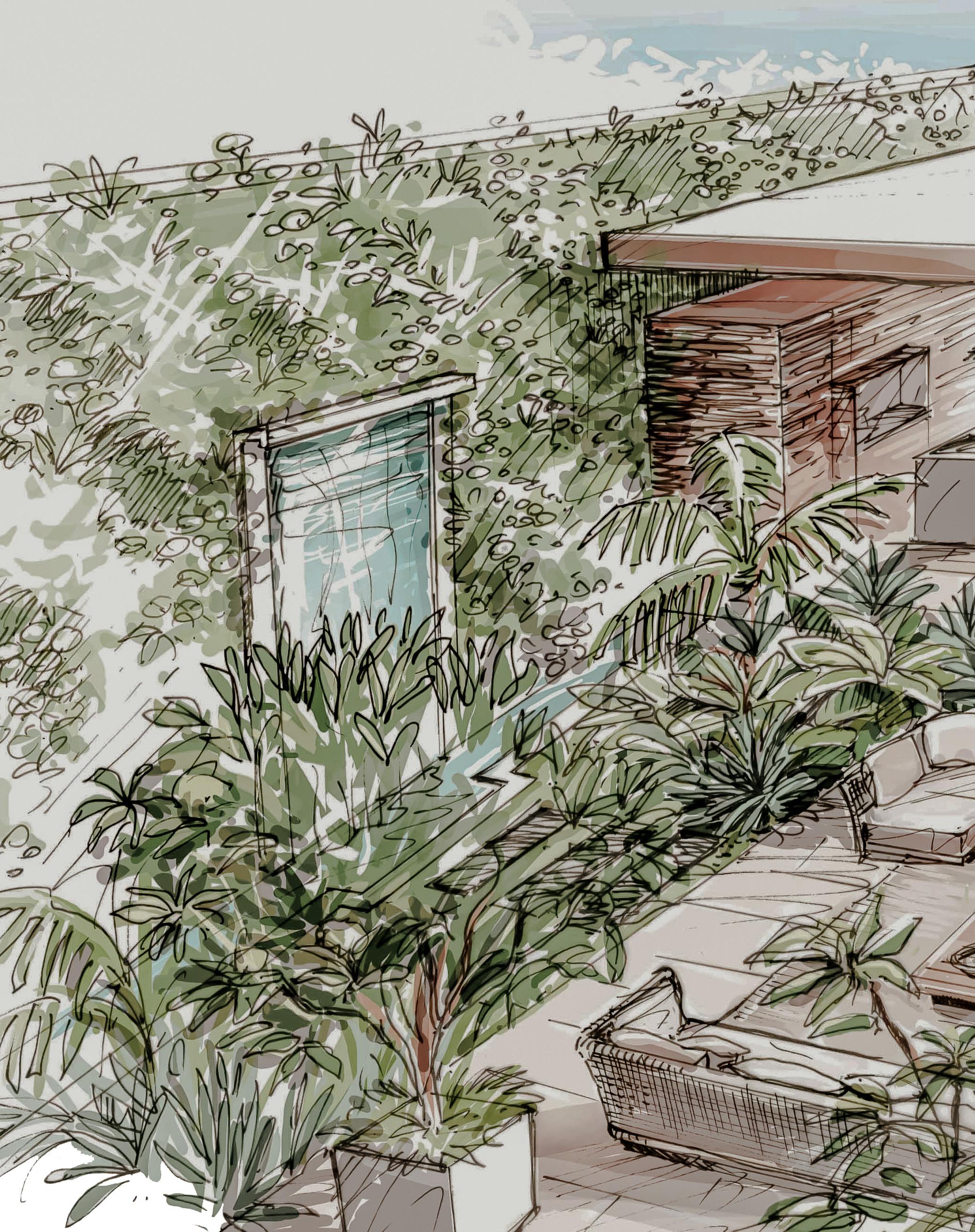 Today, an outdoor space in any location is totally inseparable from the neighboring indoor spaces. We like taking our clients out to nurseries and have them experience the actual plant volumes, sizes, interactions, proportions, and textures for them to envision and appreciate the vegetal of our study. It works better than best mood boards, notes, pictures, and drawings.