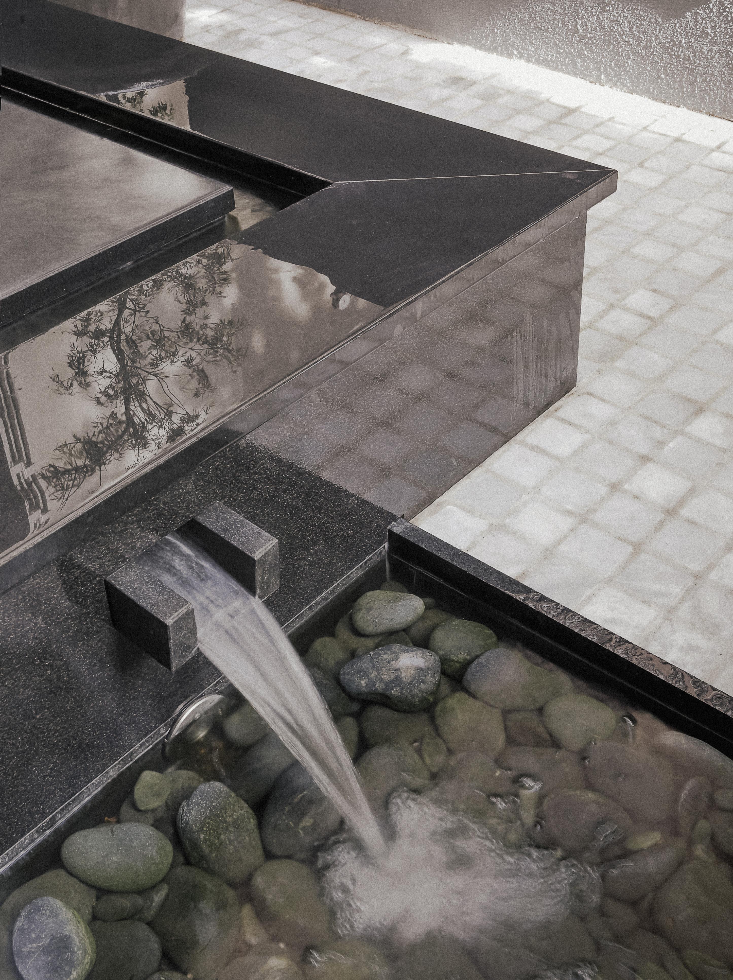 Fountain detail : custom made design & assembled in black granite from Zimbabwe.