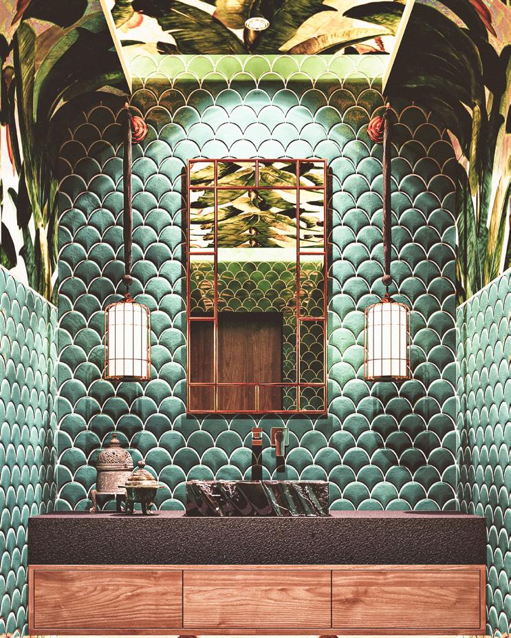 We collaborated with Indonesian and Thai craftsmen and women for custom made pots and decorative accessories, and with Patrick Blanc for the Jungle Chandelier.