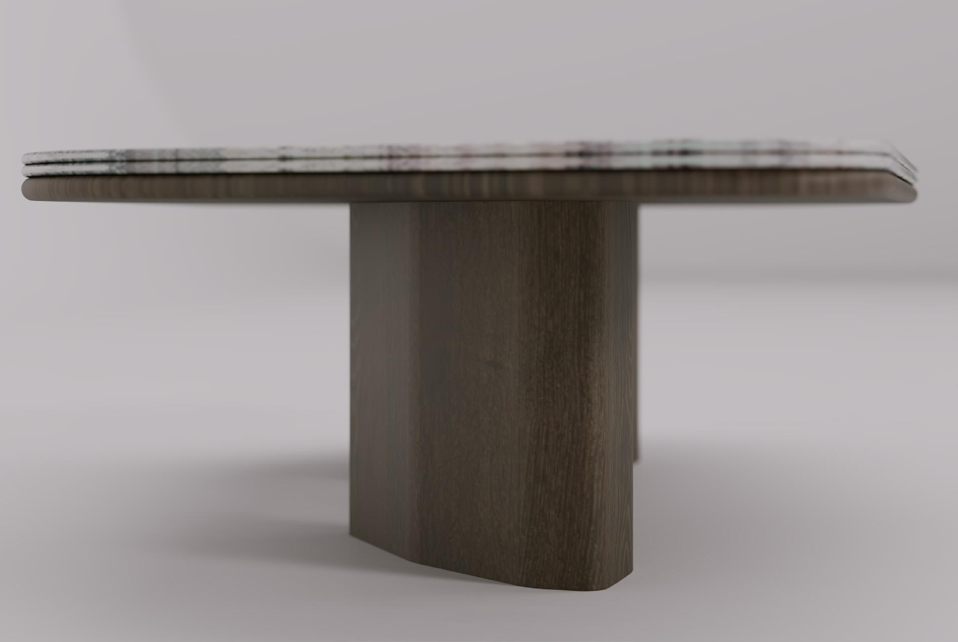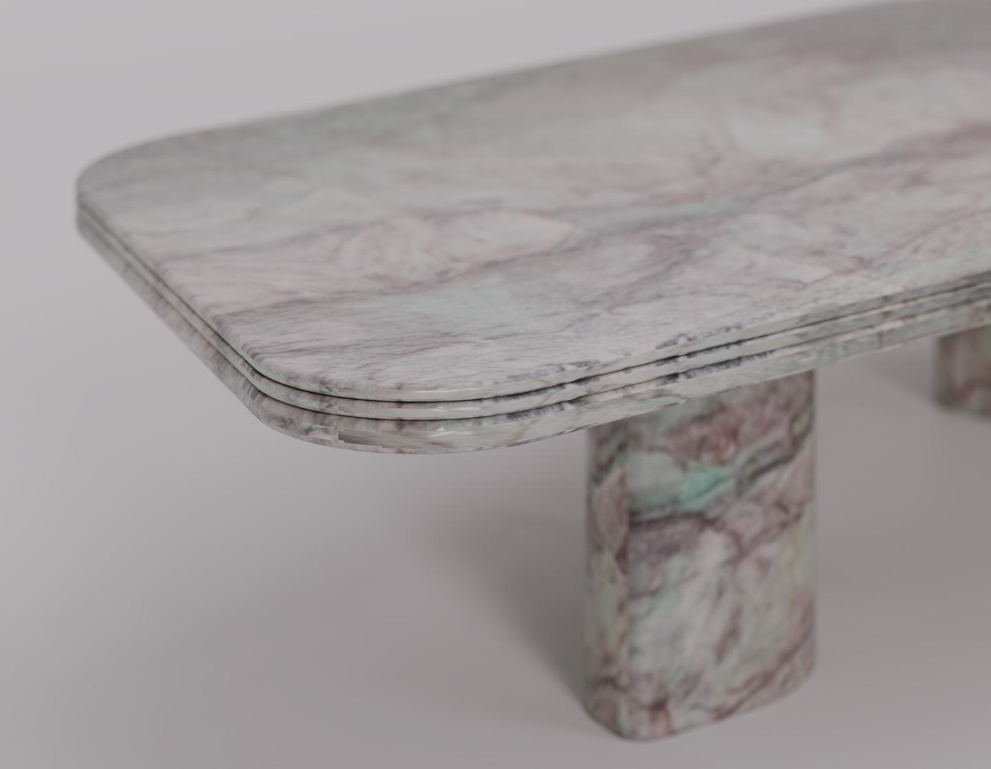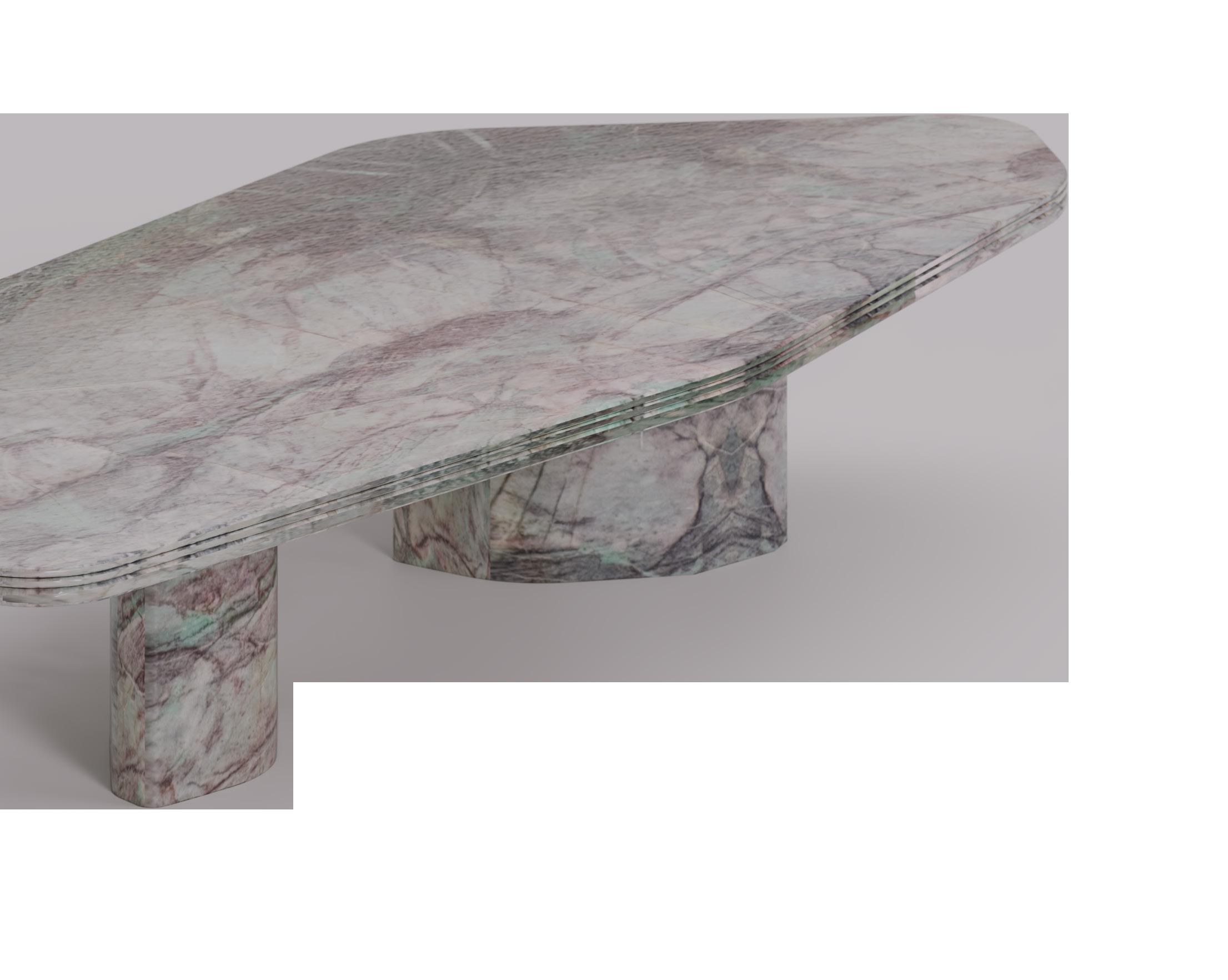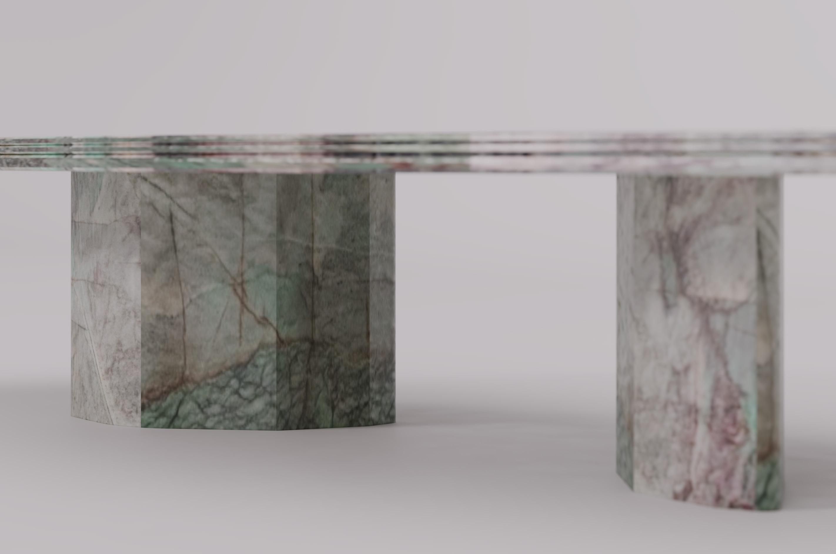 Crafted entirely from exquisite Botanical Green marble, this table is a statement of natural luxury. Its seamless monolithic form is achieved through precision stone cutting and expert assembly, with an internal reinforcement system ensuring exceptional strength and stability. The rich green tones and distinctive veining make each piece unique, while the refined finish, honed finish, nhances its tactile beauty.
